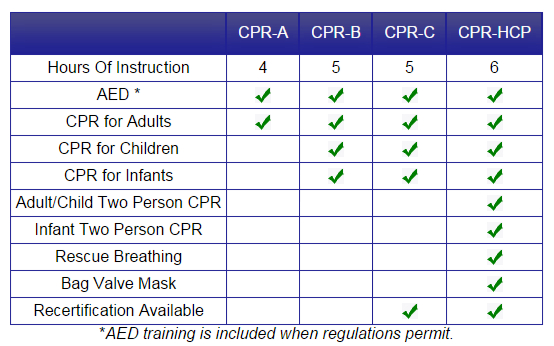 The different levels of CPR training can sometimes be confusing. Many people, especially those who need the certification to meet health care provider credentials need clarity between the varying compositions. Our CPR comparison chart shows the clear distinctions between Level A, B, C, and Health Care Provider (HCP) and how they meet the international standards.